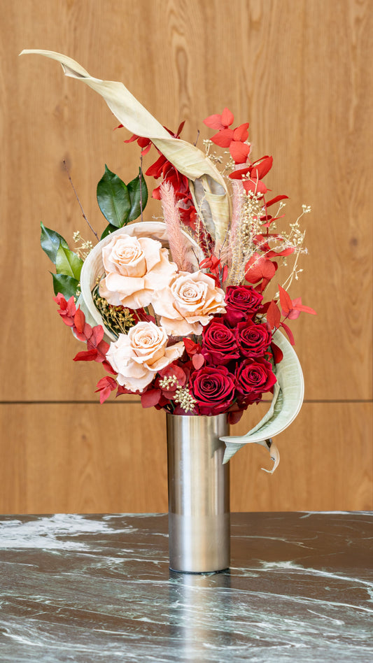Nos fleurs restent impeccables pendant plus d'un an : préservées à leur apogée grâce à un processus artisanal et durable.