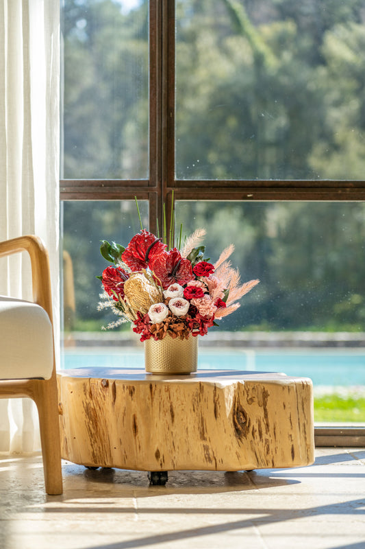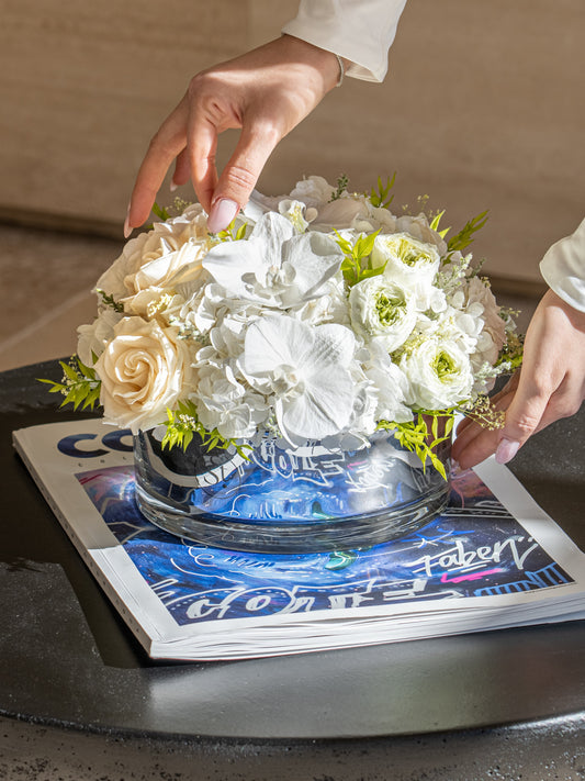 Nos compositions sont conçues pour apporter beauté, élégance et douceur durables au quotidien. Réalisées à partir de vraies fleurs préservées à leur apogée, elles restent fraîches et impeccables pendant plus d'un an, sans arrosage ni entretien.
